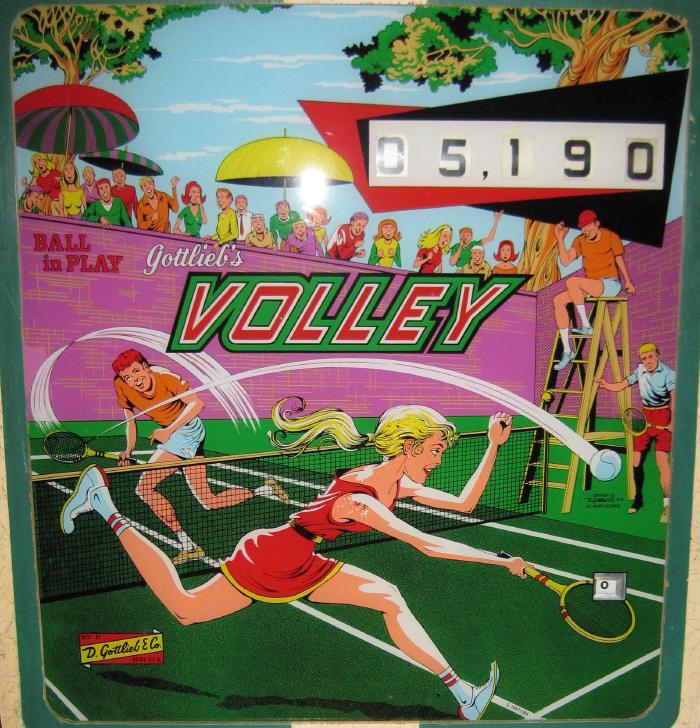 Just like Spin Out, Volley is a wedgehead electromechanical machine. It features 15 drop targets which change value based on whether the matching roll-over lane has been lit. Drop the targets in the banks one at a time to maximize your score!