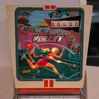 Tennis exploded in popularity in the early 1970s, and in 1973 the famous match between Billie Jean King and Bobby Riggs (the “Battle of the Sexes”) was a landmark event for women’s sports. A few years later in August 1976, Gottlieb released Volley, themed with a man and woman in a tennis match.